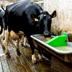 A cow can drink as much as 20 liters of water per minute, so a quick supply is critical. Older types of troughs generally cannot meet the water needs of fast drinking cows; the water pressure is too low for this. In addition, the older types of troughs - consider, for example, the concrete troughs still found in many barns - are often difficult to clean, compromising water quality. Leftover feed residue in the water is a source of bacterial growth.